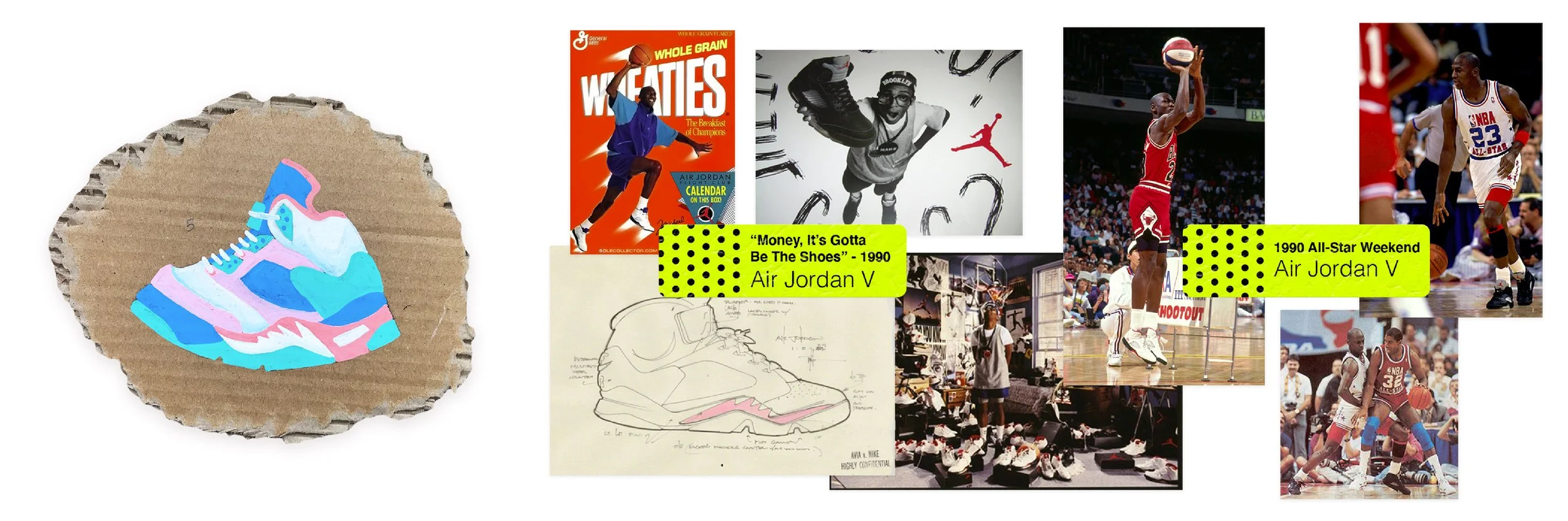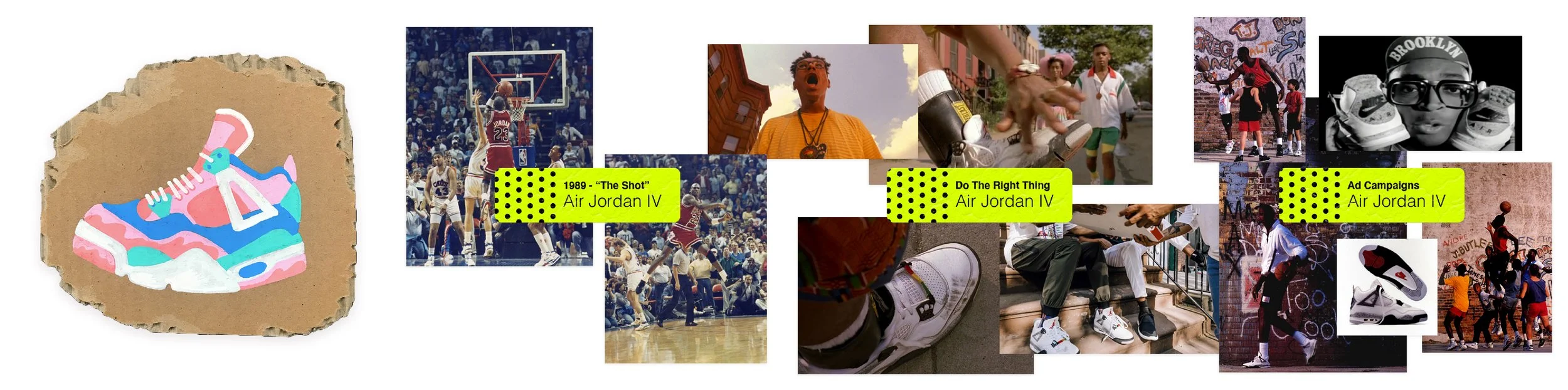 Using found cardboard, I illustrated and hand-painted a series of 1/1 Nike Shoes with some of the biggest cultural impacts and created a series of collages to support and help tell the stories of each shoe. You can find those collages here on my socials.